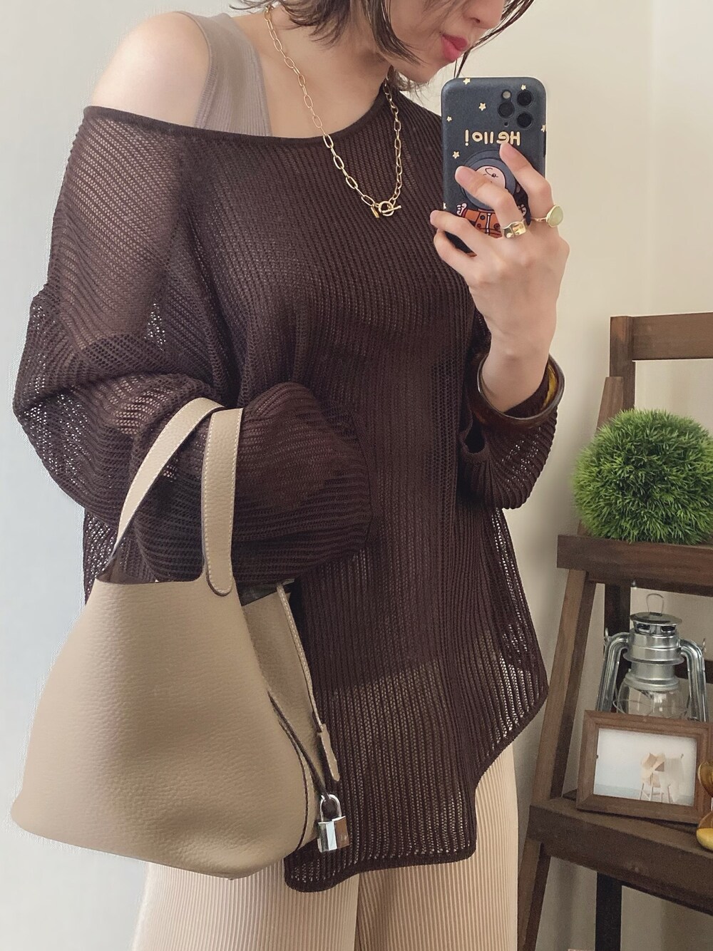 プチプラコーデ🥨🍪🍫 GUの🗣💛 590円にお値下げされてたメッシュトップスと、、 990円のスクエアのタンクトップ🤎 なんともプチプラ🗣💛 beige × brown のコーデでした🧸 Instagram ▷▷@meme158cm PARTE
