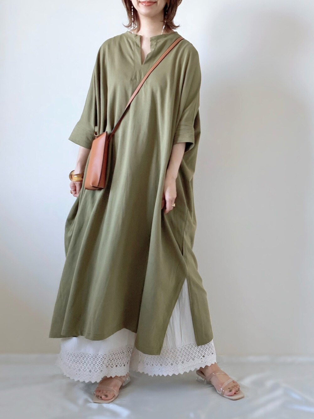 memeのワンピース「一枚で決まる。カフタンワンピース」を使ったコーディネート