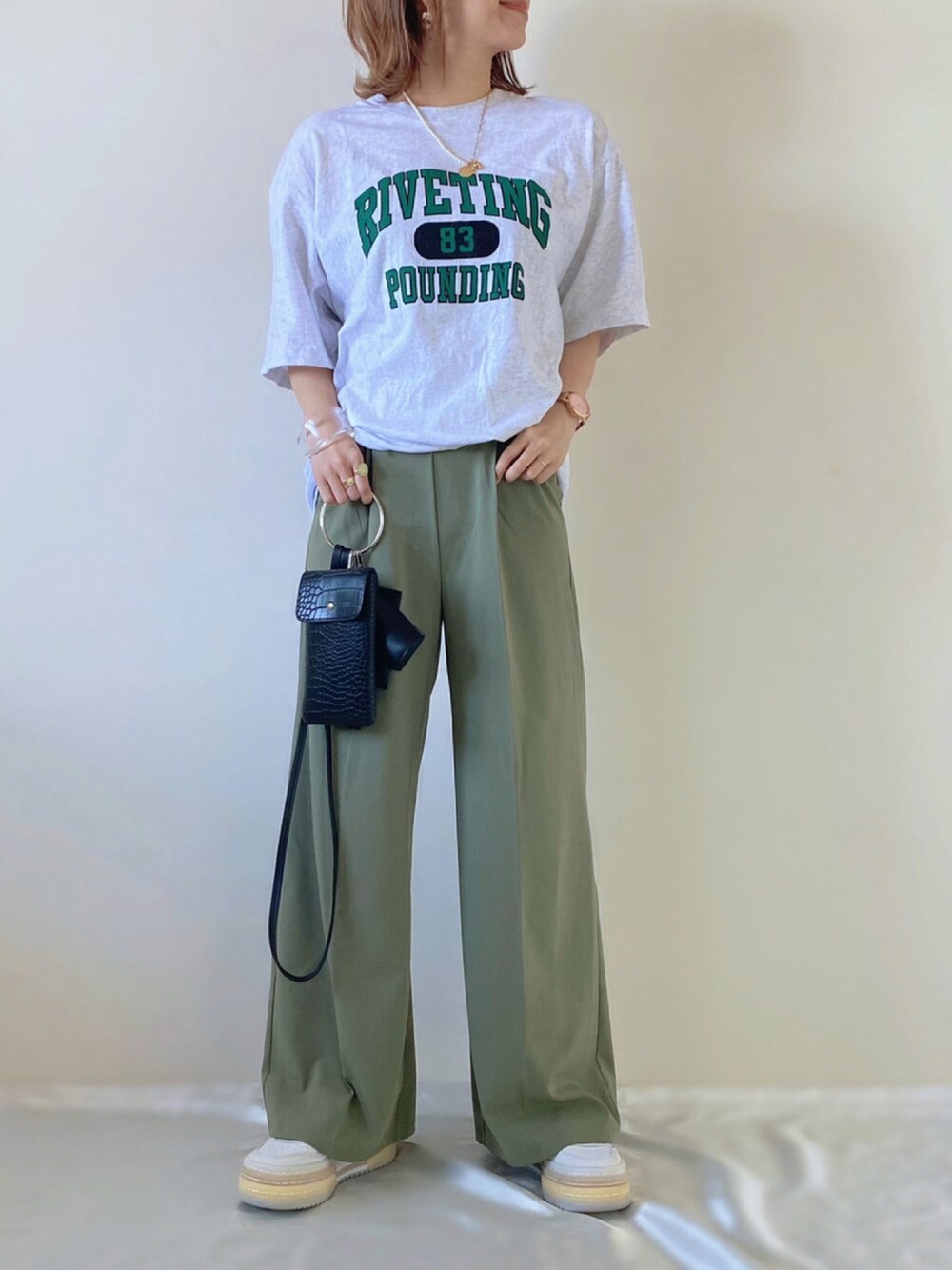綺麗なグリーンのワイドパンツがNew in🌿🕊 🔸 KiraKiraShop 🔸 【フロントタックワイドパンツ】 商品番号:jnb0081 セージグリーン/フリーサイズ フロントタック入りの柔らかくて履き心地の良いワイドパンツ🤍 とても綺麗なシルエットで、程よいゆとりをもって履けちゃうのでリラックス感も◎ このコーデで自転車に乗ったけど、楽ちんだった🥺👌✨ 両サイドにポケット付きで便利だよ☺️✨ 合わせるアイテムによって、綺麗めにもカジュアルにも着られそう👏🏻 カラバリも豊富で6色展開なので、お気に入りが見つかるはず🥰 こちらのpantsは〜☟ ——————————————————————————— ✔︎ 8月10日 10:00 ~ 8月11日 09:59 まで 24h⏳ 通常2838円→タイムセール価格2180円(送料無料)でgetできちゃうよ🛒✨ ✔︎ 8月10日 00:00 ~ 23:59 まで 楽天お買い物マラソン 広告クーポン枠 ※店内全品対象10%OFFクーポン発行✨ ぜひ、checkしてみてね🔎 ´、 (Instagramからショップに飛べます✈︎) ——————————————————————————— コーデは𓂃 𓈒𓏸 グリーンのロゴTとスニーカーで 大人カジュアルに𓀠 Instagram PARTE ▷▷@meme158cm Sharee