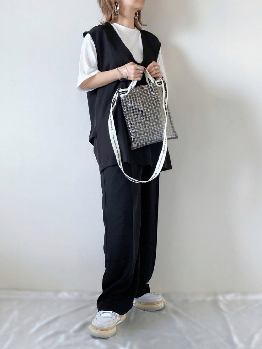 memeのショルダーバッグ「【beautiful people(ビューティフルピープル)】《STUDIOUS別注》ビニールサコッシュバッグ」を使ったコーディネート