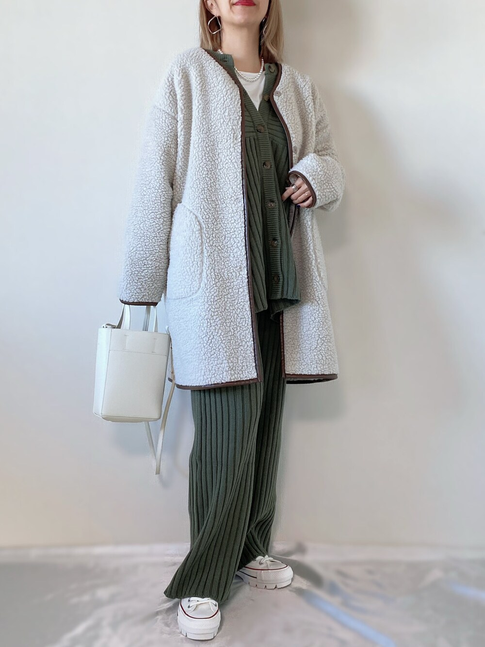 寒い日のリアルコーデ☃️ ニットのセットアップに ボアのアウター🐏🤍 セットアップは別々にも使えるし便利ね◎ カーディガンタイプで、上は春先まで着られそう🌷 パイピングとボアが可愛いアウターは、 かなりお値下げされてたよ♡ ボールチェーンが可愛いネックレスは色々なコーデに合わせやすくて重宝してます♡ バッグは 🔸 東京百花 🔸 【ミニショルダートートバッグMaruno】 アイボリー 着用🥛 本来なら捨てられることもあるスプリットレザーを使用していてサスティナブルなバッグ♡ トートにもショルダーにもなって実用性も◎ 持つとコーデが引き締まります☺️✨ (アクセサリーとバッグは Instagramからショップに飛べます✈︎) Instagram PARTE ▷▷@meme158cm Lemon8