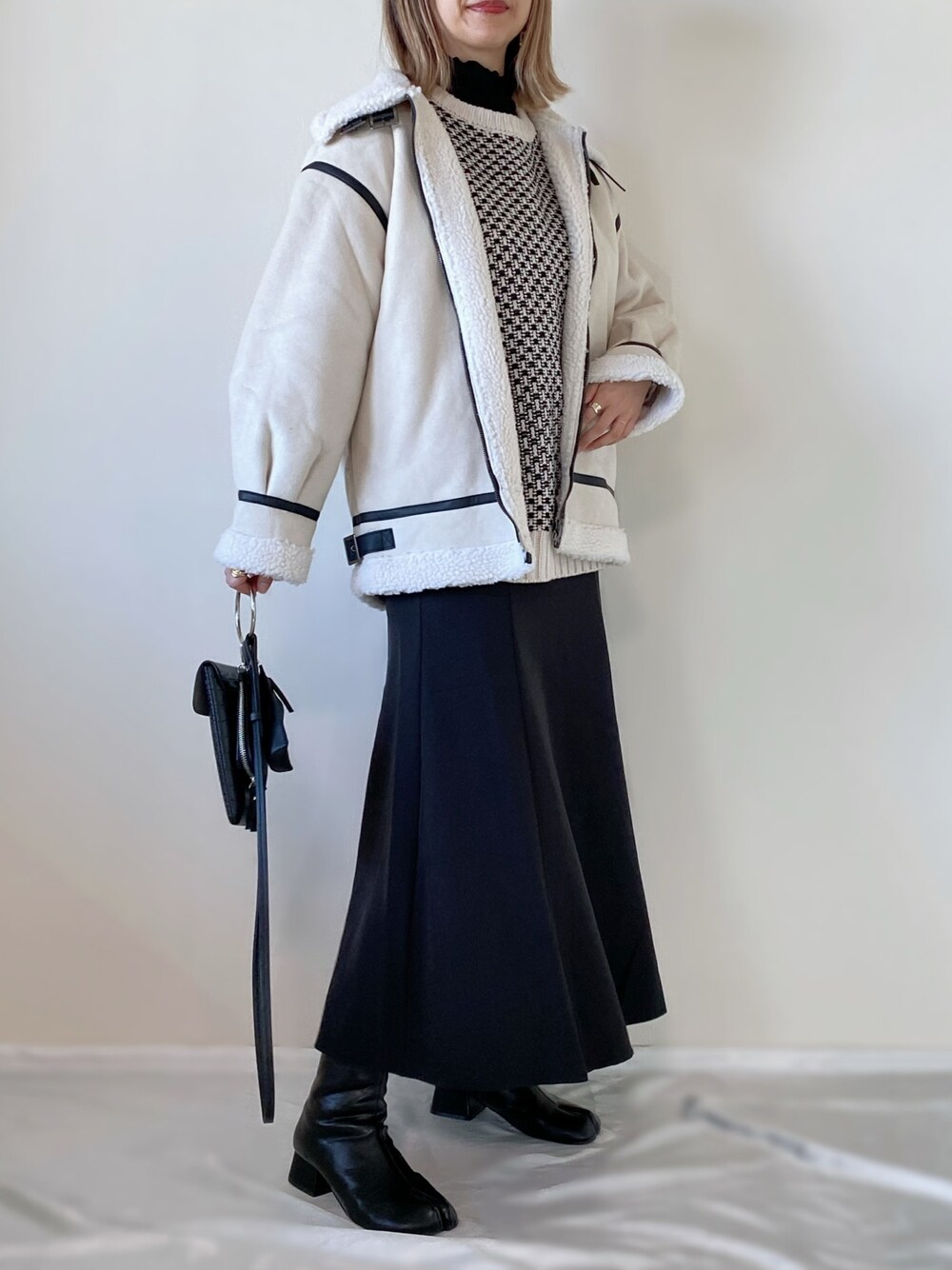 moment+さんコーデ!♡ バッグとブーツ以外が all moment+さんのお洋服だよ☺️✨ Instagramのプレゼント企画に当選して アウターやニット、ボトムス、マフラーなど10点もお出迎えしました😭✨ どれを着ようか♡ たーくさん可愛いitemがあるので、迷いましたが🙈🧡 まずは、、♡ ✔︎ムートンジャケット ✔︎ジャガードニット ✔︎シアータートル ✔︎マーメイドフレアスカート を合わせてみたよ🪞´、 どれも自分ではチャレンジしたことのないデザインでドキドキ💓 新しい雰囲気に出会えて幸せな気分になれました🥰 Instagram PARTE ▷▷@meme158cm Lemon8