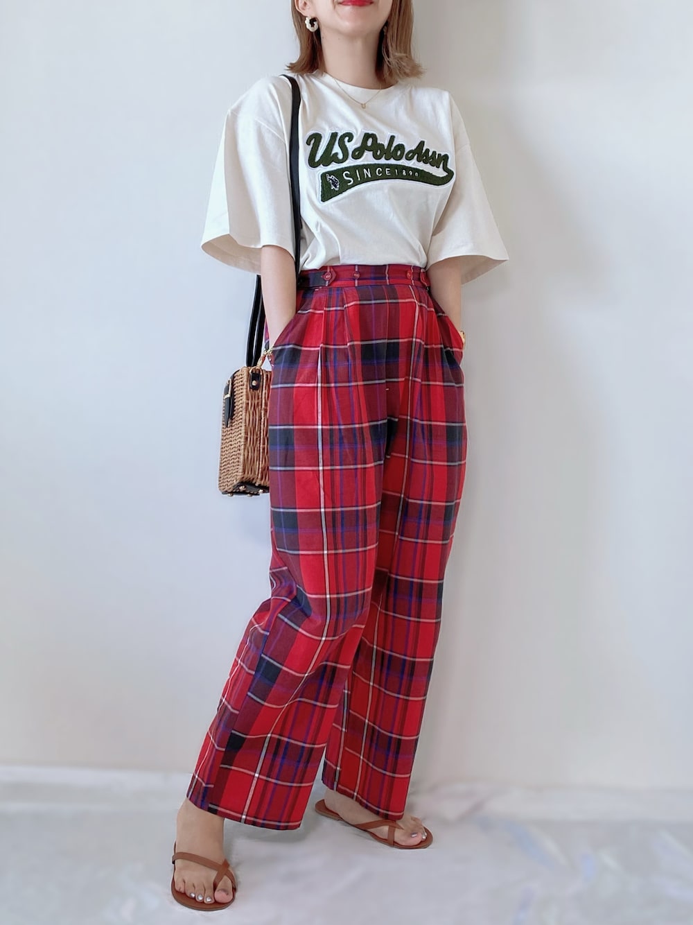 真っ赤なチェックパンツの 大人カジュアルコーデ🍅 Instagram PARTE ▷▷@meme158cm Lemon8