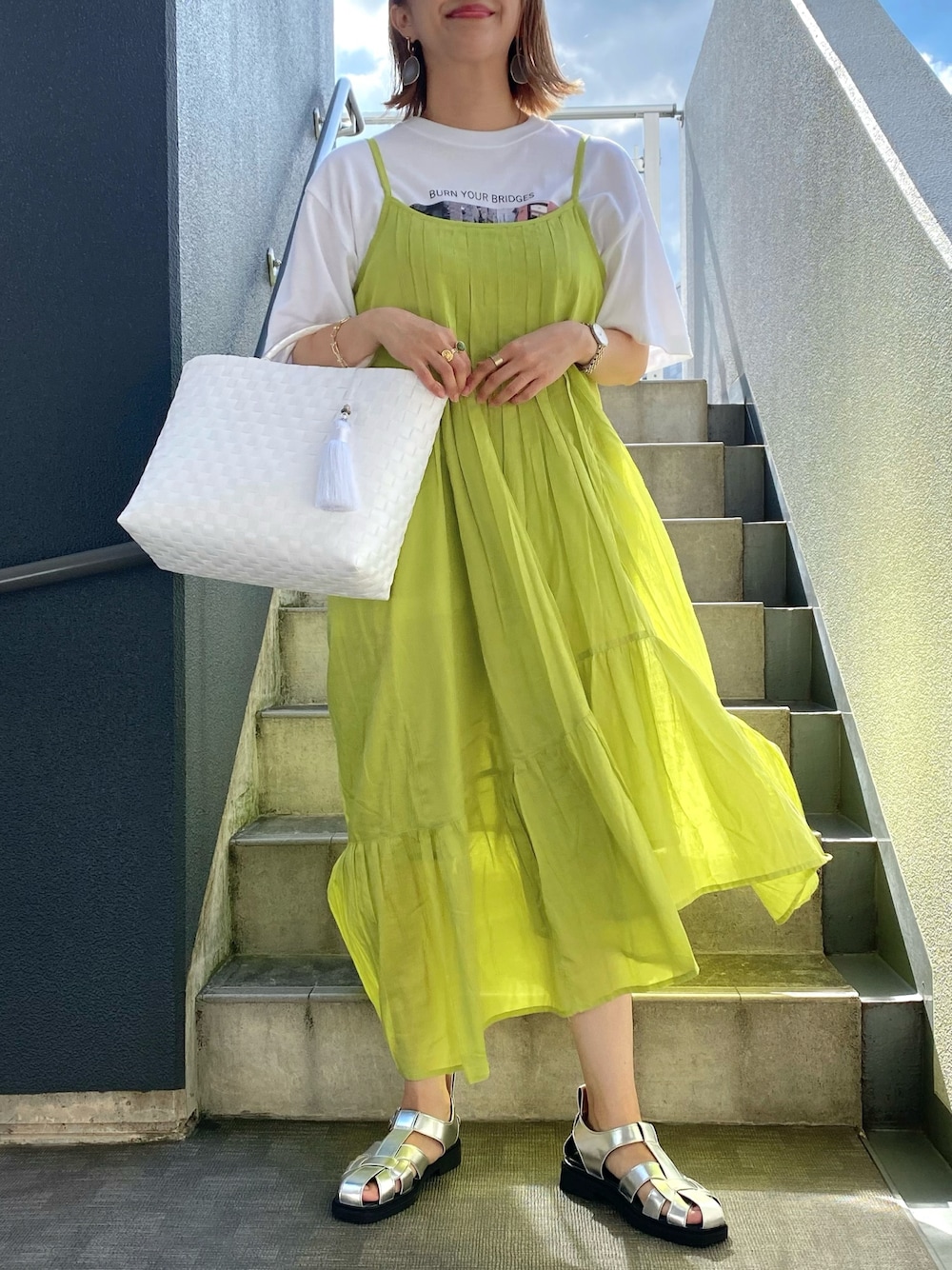 moment+さんの 涼しげなキャミワンピース🌿 Tシャツに合わせても可愛いよー♡ ☑︎インド綿100%コットンボイル ピンタックキャミワンピース [color]イエロー×グリーン [size]FREE ふわっとエアリーなデザインが夏にぴったり𓂃 𓈒𓏸 アシメカットの裾がお洒落でお気に入り☺️✨ 風になびくと、とーっても可愛い♥️ 通気性、吸水性のあるインド綿100%で暑い日も快適に着られるよ◎ プリントTチラ見せもいい感じ🤗 Instagram PARTE ▷▷@meme158cm Lemon8