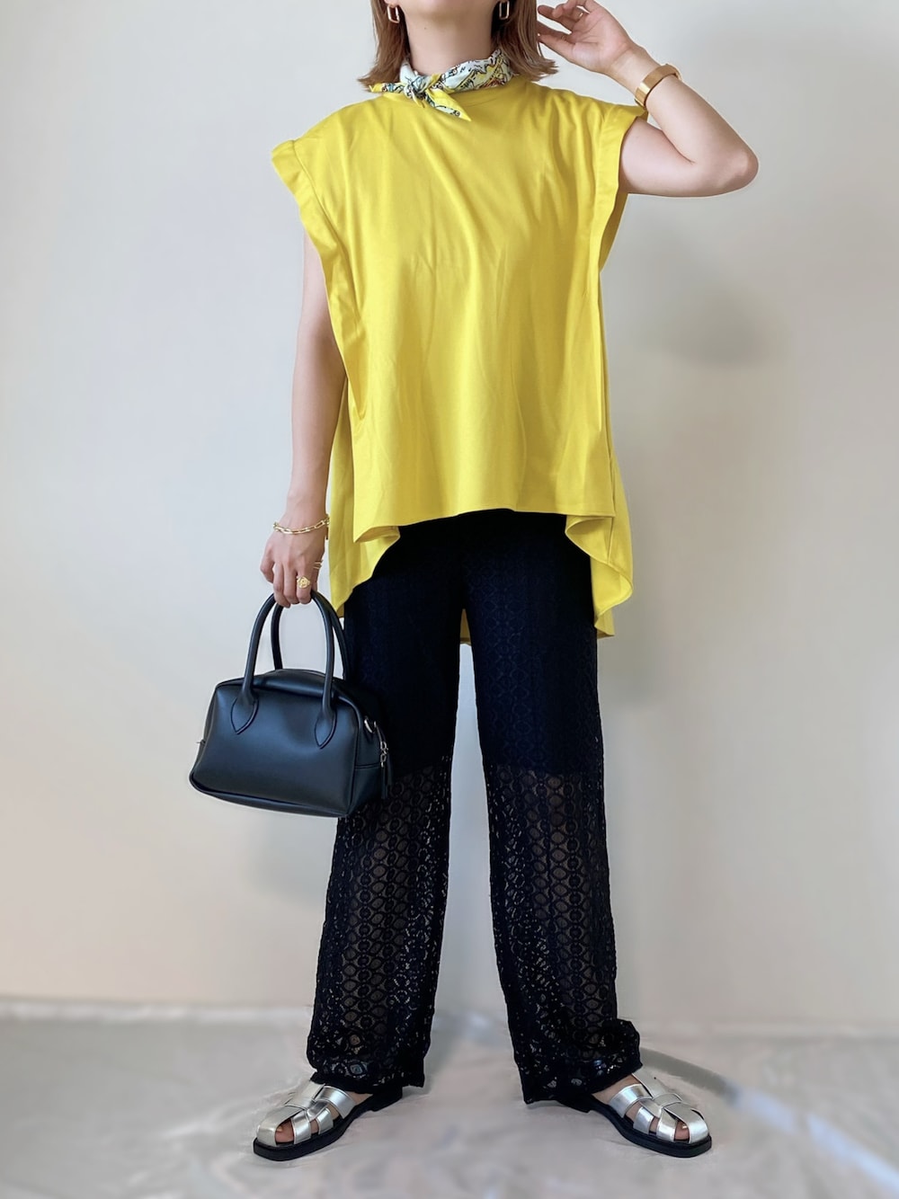 yellow × black💛🖤 久々にスカーフ巻き𓂃 𓈒𓏸 Instagram PARTE ▷▷@meme158cm Lemon8