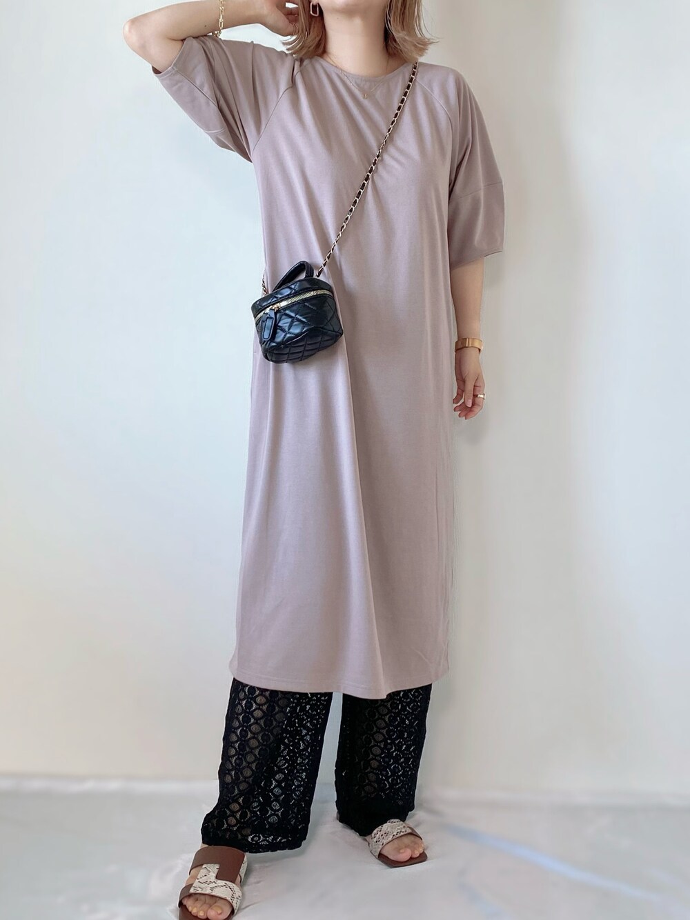 ワンピ × レースパンツ🌿 🔸My:nia ☑︎ 汗染み防止 ランタンスリーブワンピース [品番]171313213 [color]ベージュ [size]L 着用 汗は吸うのに表面は目立たない生地✨が嬉しいワンピース♩ 接触冷感・UVケア機能も👏🏻 程よいボリューム袖が、二の腕をカバー☺️ 後ろはスリット入り𓂃 𓈒𓏸 ぜひcheckしてみてね♡ (Instagramからショップに飛べます✈︎) 今回はレースパンツをレイヤード! 柄パンツとかレイヤードしても可愛いだろうなぁ💛 Instagram PARTE ▷▷@meme158cm Lemon8