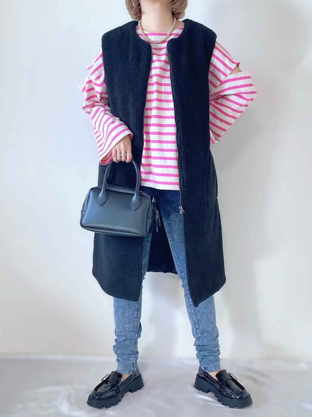 memeのベスト「ボアロングベスト」を使ったコーディネート