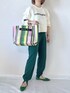 memeのトートバッグ「ストライプバッグ」を使ったコーディネート