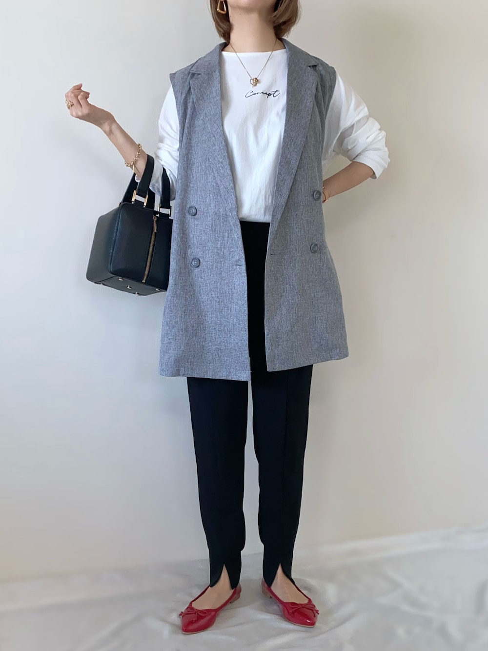 forksy.さんのベストがNew in🤎 3/21(火)に発売した新作のベストです🌷 🔸forksy. ☑︎ミドル丈ダブル釦ベストジレ [color]グレー [size]FREE いつものコーデにプラスするだけで、格上げコーデになること間違い無しなitem🥰 ダブル釦がハンサムライク〜◎ サラッと着られて重ね着をしてもストレスフリーで着用できます🫶💓 お尻まですっぽり隠れるミドル丈でお洒落に体型カバーをしてくれるよ☺️✨ コーデは ロンTのロゴをチラ見せした、綺麗めカジュアルなコーデに🌼 Instagram PARTE ▷▷@meme158cm Lemon8