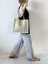 memeのかごバッグ「ヘリンボーン柄トートバッグ」を使ったコーディネート