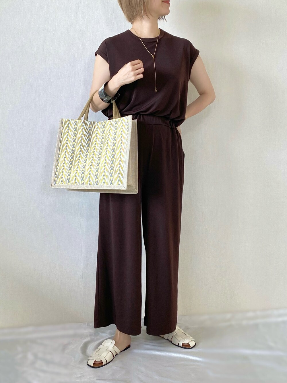 memeのかごバッグ「ヘリンボーン柄トートバッグ」を使ったコーディネート