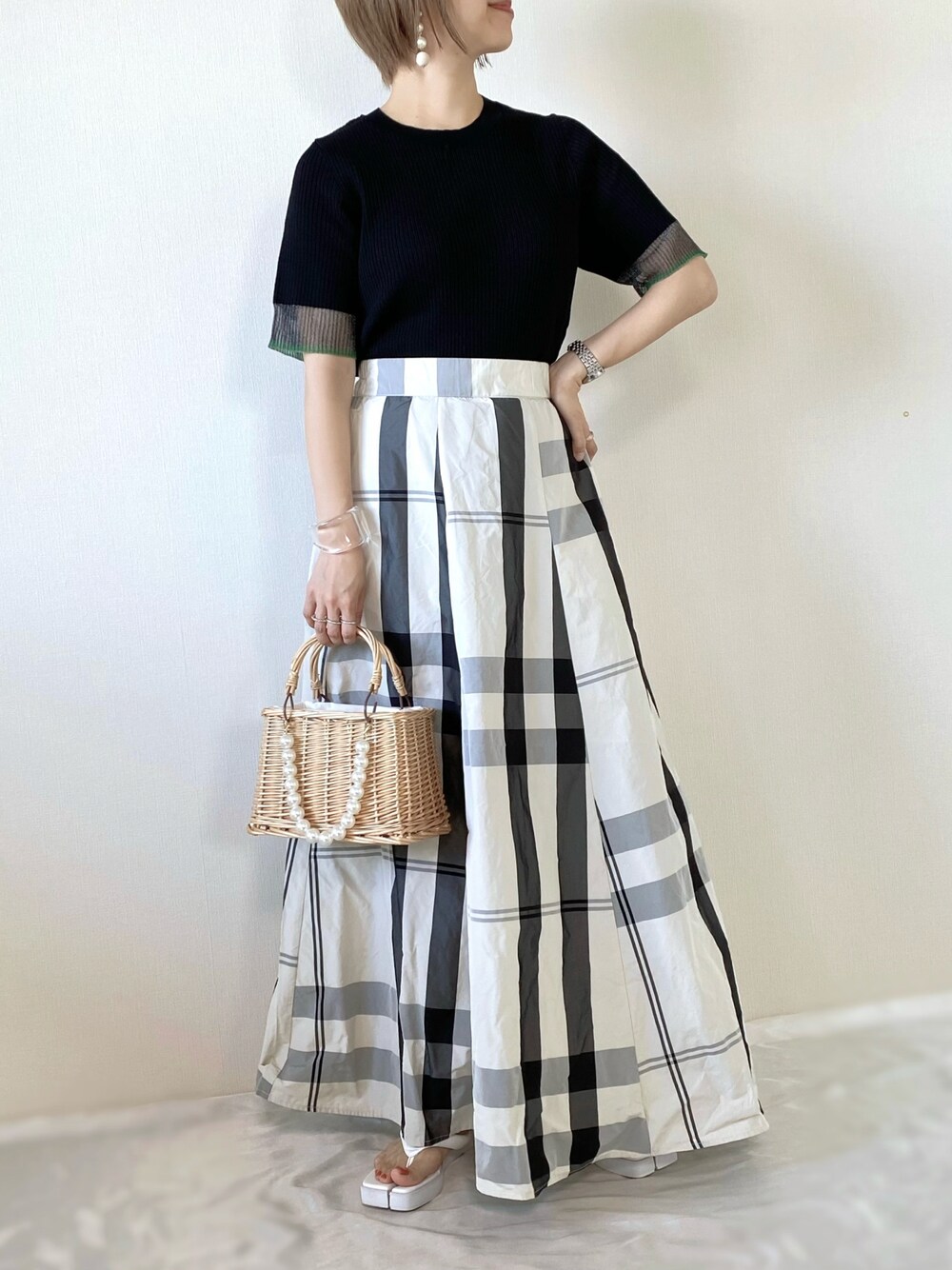 お洒落なスカートがNew in🩶 コーデの主役になる✨ Anss.meさんのマキシスカートを着用してます🥰 🔸 Anss.me ☑︎ チェックタフタボリュームマキシスカート [color]ホワイト [size]FREE 大きなチェック柄が大人かわいいデザイン🫶💕 綺麗なAラインシルエットに感動しちゃいました✨ ほどよいボリューム感が、腰まわりをお洒落にカバー♡ ウエストはバックゴムで楽ちんなのも嬉しい〜✌️ トップスをインして、メリハリのあるstyleがお気に入りです☺️✨ コーデは 大人かわいい夏のモノトーンコーデに🩶🖤 Instagram PARTE ▷▷@meme158cm Lemon8