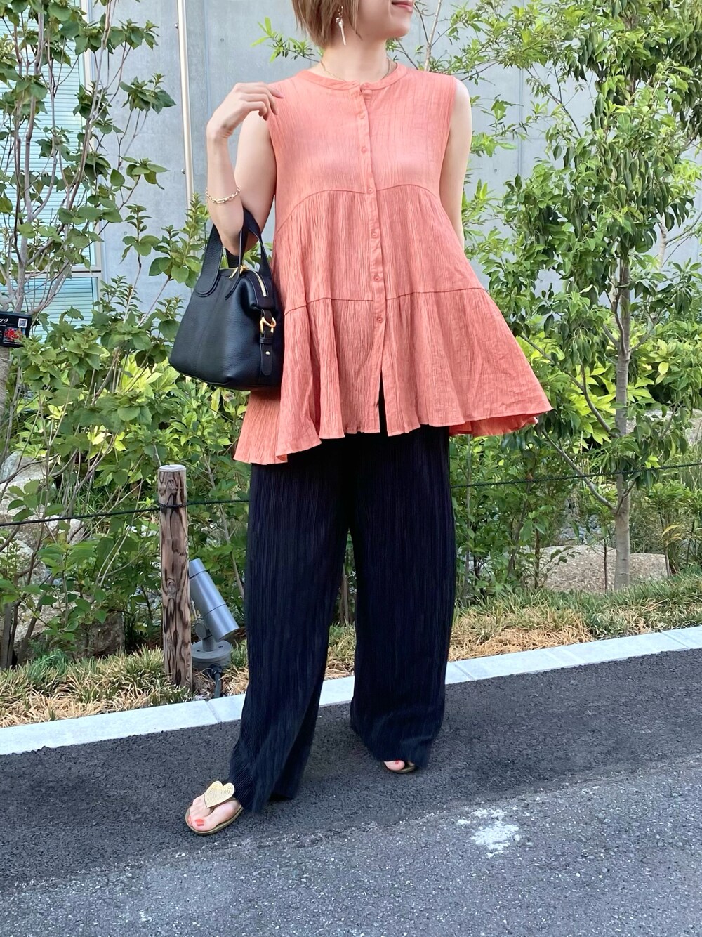 memeのシャツ/ブラウス「楊柳ティアードノースリーブブラウス」を使ったコーディネート