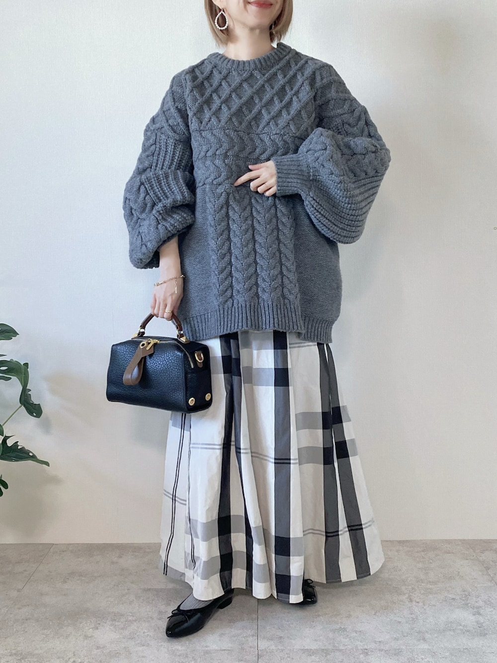 ゆるニットとボリュームスカートの 大人かわいいコーデ🩶 このコーデ、ツボです🥰 バッグは、ハンサムデザインのものを合わせてみたよ👜 🔸 florist ☑︎【2way】配色スクエアショルダーバッグ/ボストンバッグ [color]ブラック ストラップを付けるとショルダーに変身するバッグ。 今回は外してハンドバッグとして◎ きちんと感があり高見え〜♡♡ Instagram PARTE ▷▶︎@meme158cm Lemon8