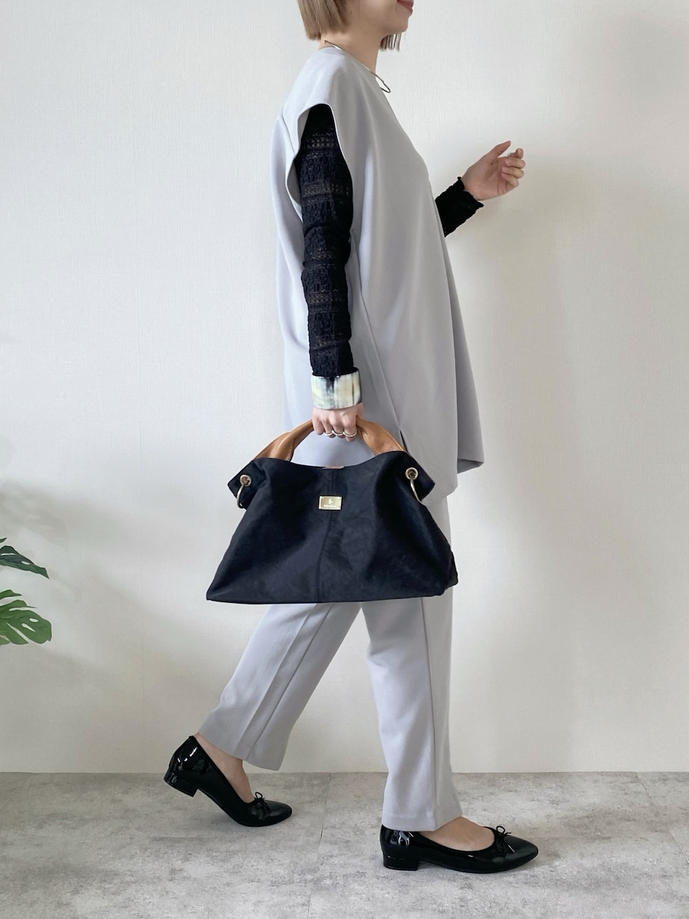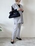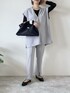 memeのトートバッグ「本革2WAY/2SIZE撥水スクエアナイロンとレザーのプレート付きトートバッグ」を使ったコーディネート