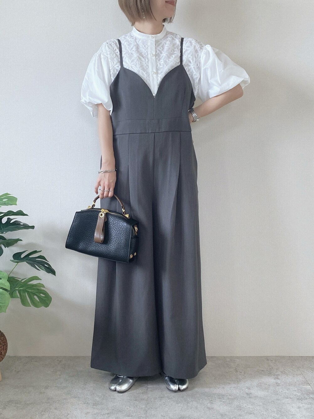 ブラウス × ワイドサロペットで 夏のハンサムコーデ👨🏻🦱✨ デザイン性のあるブラウスと スーツのような素材のサロペット♡ こんなコーデも良き🫶🏻 Instagram PARTE ▷▶︎@meme158cm Lemon8