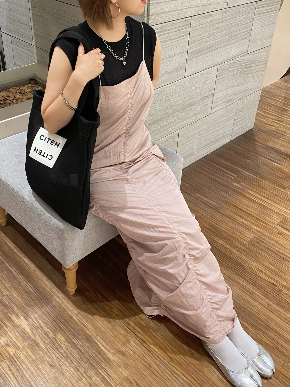 memeのトートバッグ「<CITEN>メッシュ トートバッグ」を使ったコーディネート