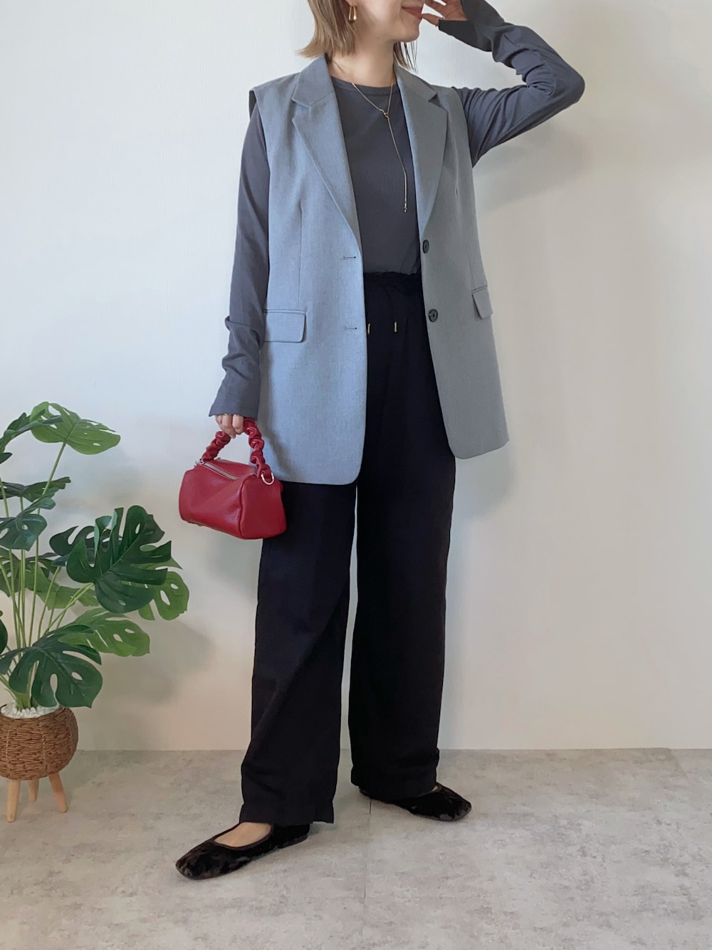 GUコーデ 🫶🏻 最近、GUで購入した3点を ギュギュッと詰め合わせたコーデ🥰 こういうハンサムなコーデも秋はしたいな〜🍂 🔸 GU ☑︎ソフトリブクルーネックT[長袖] ☑︎オーバーサイズテーラードベストZ ☑︎メリージェーンシューズ トップスは2色目🩶 グリーンも持ってるよ🫒 レイヤードしやすくて着心地もgoodです!♡ Instagram PARTE ▷▶︎@meme158cm Lemon8