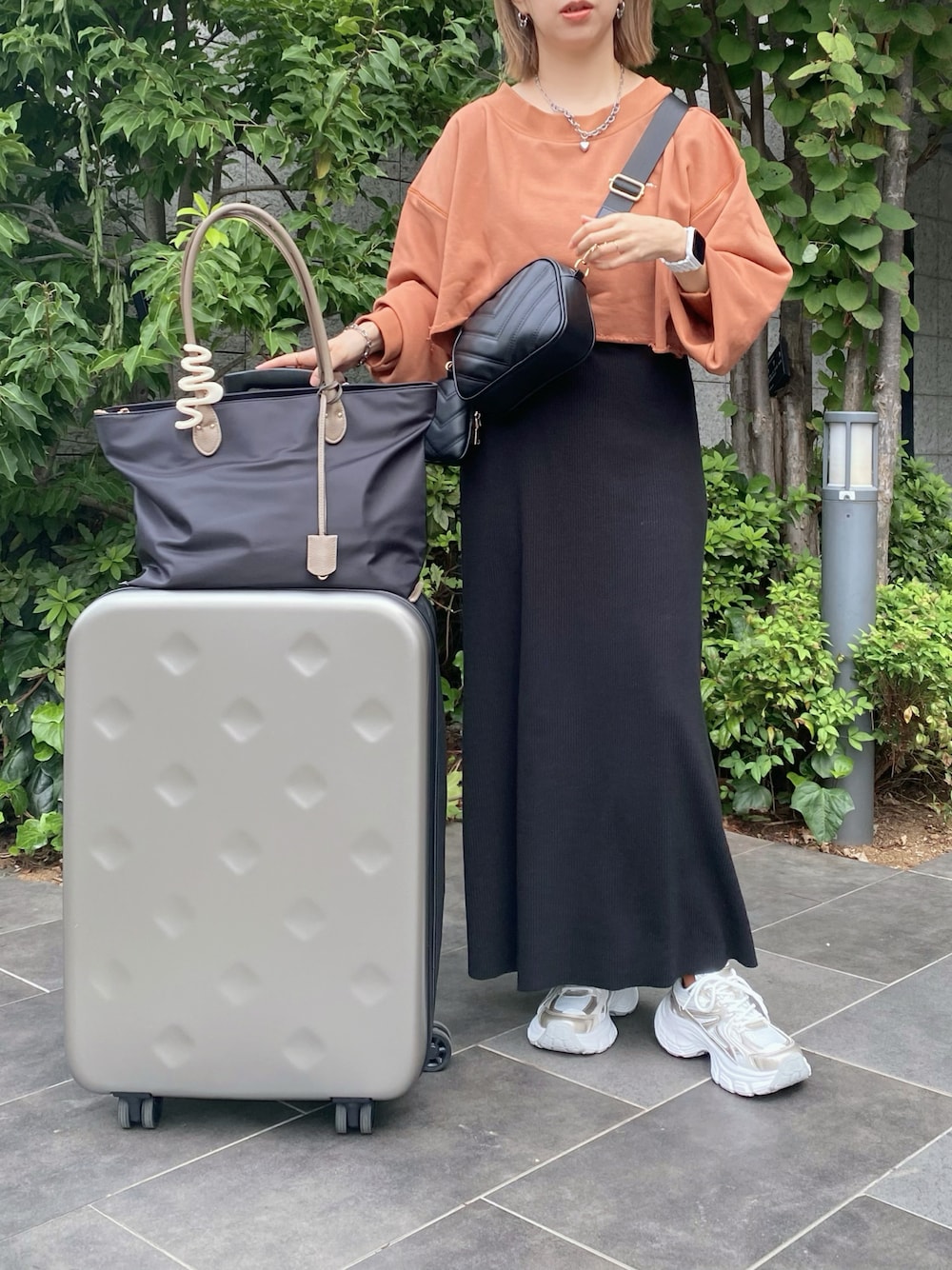 旅行初日のコーデは 楽ちんキャミワンピにスウェットでした♡ キャリーケースは、使わない時は畳めてぺったんこになるよ✨ 収納場所をとらないのでおすすめです☺️ Instagram PARTE ▷▶︎@meme158cm Lemon8