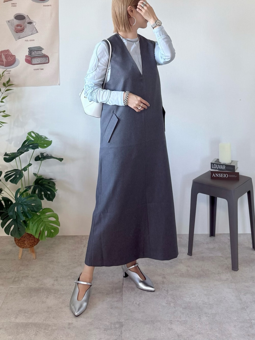 aquagarageさんの 綺麗見えワンピースがNew in🩶 🔸 aquagarage ☑︎ 深Vネックワンピース [color]チャコール [size]S-M オールシーズン着られるワンピース✌🏻💞 深Vネックで顔まわりスッキリ〜✨ 品のあるデザインで、ちょっときちんと感を出したい日にもピッタリ☺️🌼 両サイドにポケット付きなのも嬉しい〜🫶🏻 コーデは シアートップスを合わせたブルー×チャコールの春の爽やかコーデに🩵🩶 Instagram PARTE ▷▶︎@meme158cm Lemon8