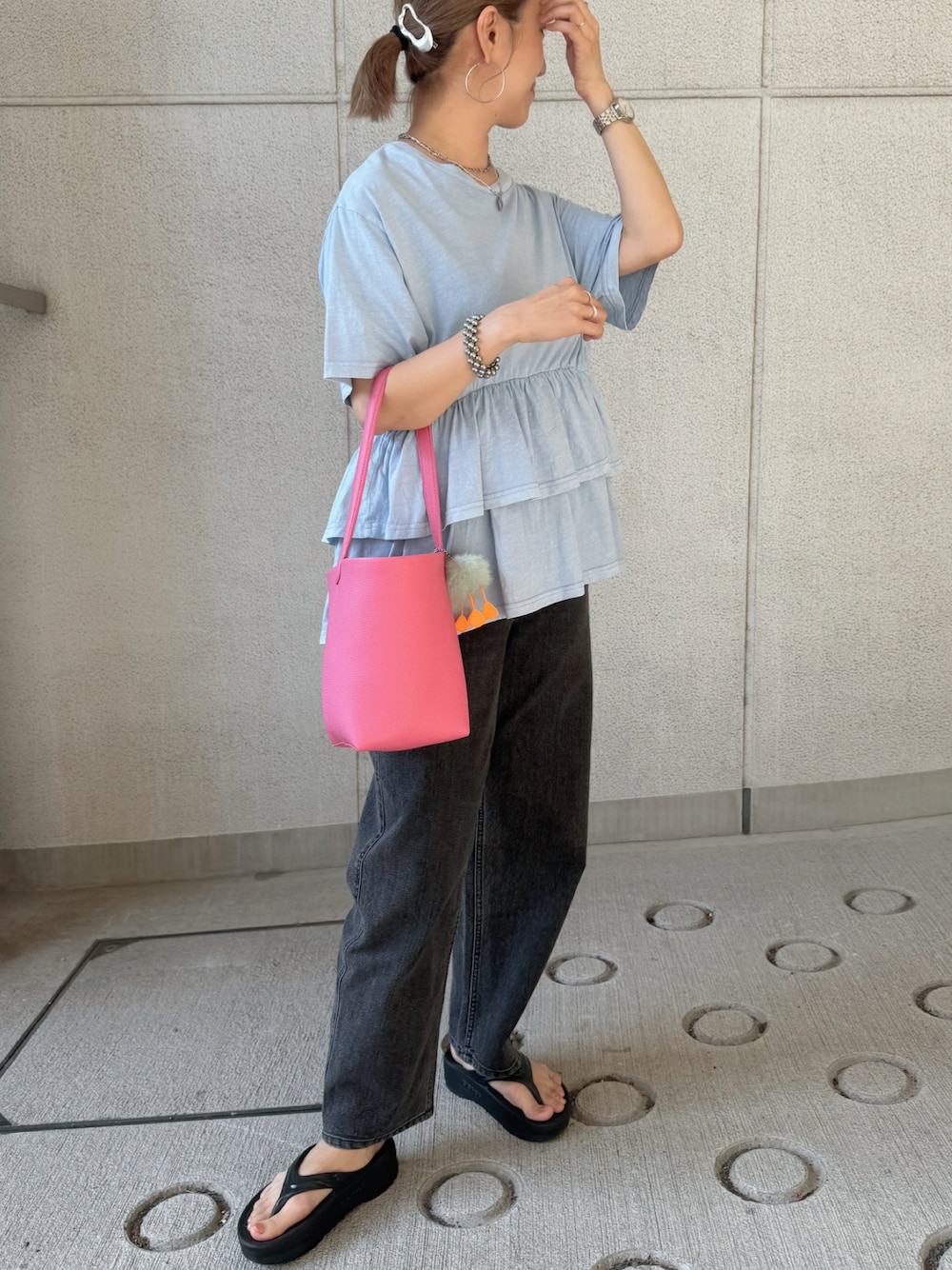 memeのTシャツ/カットソー「ペプラムフリルトップス」を使ったコーディネート