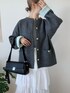 memeのカーディガン/ボレロ「ゴールドボタン裏配色ニットジャケットカーディガン」を使ったコーディネート