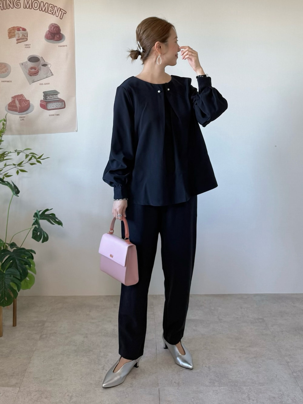 aquagarageさんの セレモニーに着たいセットアップ🤍 🔸 aquagarage ☑︎ パール付きブラウスパンツセットアップ [品番]cw00785 [color]ネイビー [size]L ブラウス×パンツのセットアップ✨ 首元のフェイクパールピンがアクセントになり、ネックレス無しでも華やかに🫶🏻💕 トップスはふわっと広がるシルエットで、気になるお腹まわりもお洒落にカバーしてくれます♡ シンプルなデザインなので、合わせる小物によって雰囲気を変えて楽しめるところもステキ🥰✨ ネイビーの他に、ブラックもあるので ぜひcheckしてみてね! Instagram PARTE ▷▶︎@meme158cm Lemon8