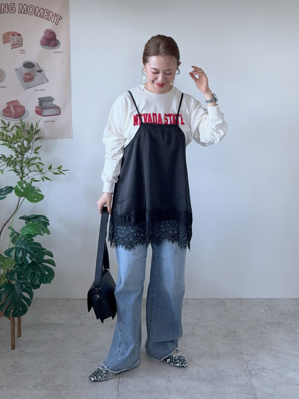 memeのキャミソール「裾レースサテンキャミ」を使ったコーディネート