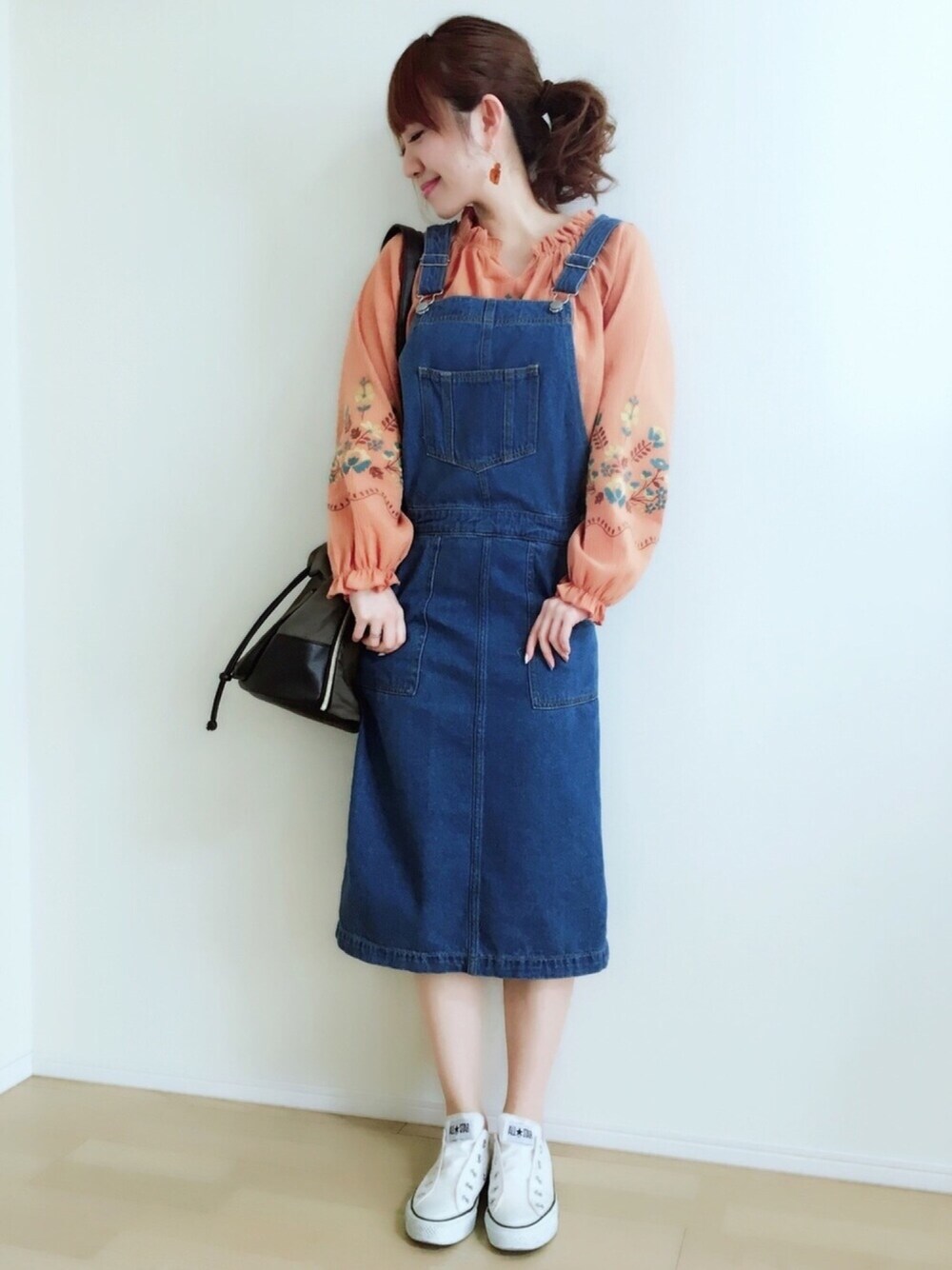 ご覧いただきありがとうございます❤️ ゴールデンウィークだ〜〜☺️🌈 今日はブラブラお出かけしてきます🎶 いつもの休日と同じ過ごし方🙈💫笑 オレンジの刺繍ブラウスに ジャンスカ合わせ💕💕 ピアスは、ハートのべっ甲♥️*✲゚* ================== 6月23日の渋谷で開催される WEARオフ会イベント🎉✨ みんな、来てね??☺️ 主催者ではありませんが、 その日はみんなが楽しめて 成功することを心から願ってます😊🌈 詳しくは小窓をチェーック❤️