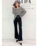 Kaho のデニムパンツ「H/Wボタンフレアデニムパンツ」を使ったコーディネート