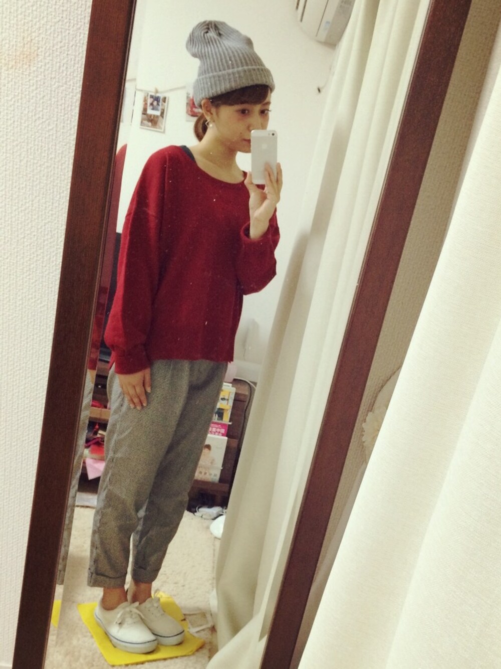 バイトday! 全身 LOWRYS FARM。 久々にパンツ。 だいすきな赤。
