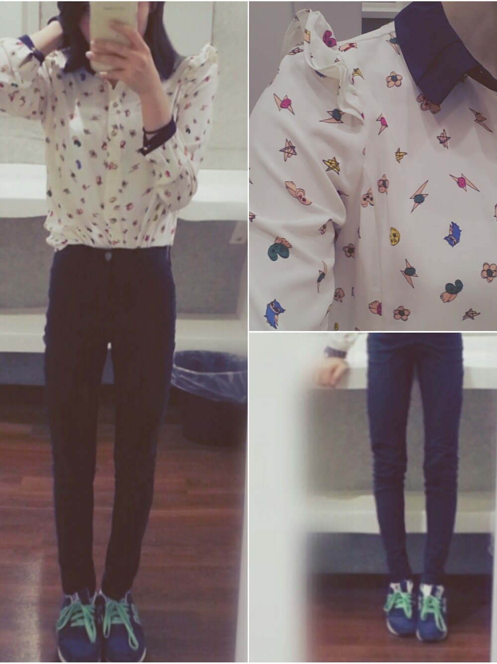 ザ・オルチャンファッション!! シャツ : 韓国 スキニー : LOWRYS FORM スニーカー : 韓国 シャツにスキニーで、 王道のオルチャンファッション!