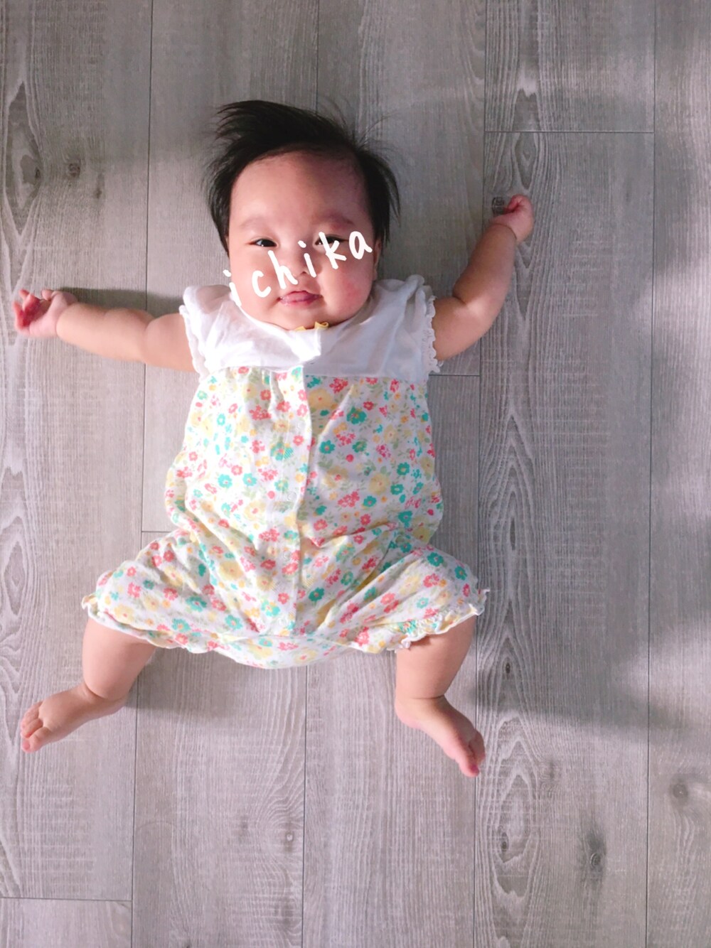 4ヶ月健診無事終了ー!! 解放されたかのようにご機嫌さん♡ 健診だと、脱いだり着せたり大変だから、久しぶりに赤ちゃんらしい洋服を♡ すぐ着れなくなってしまうのが 悲しい…