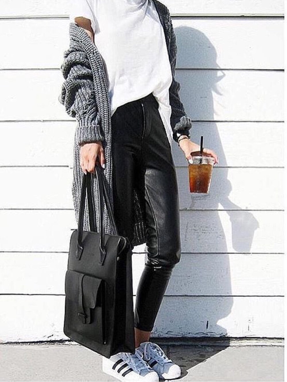 ホワイト系のスニーカーを着用したレディースの冬コーディネートの1枚目の写真