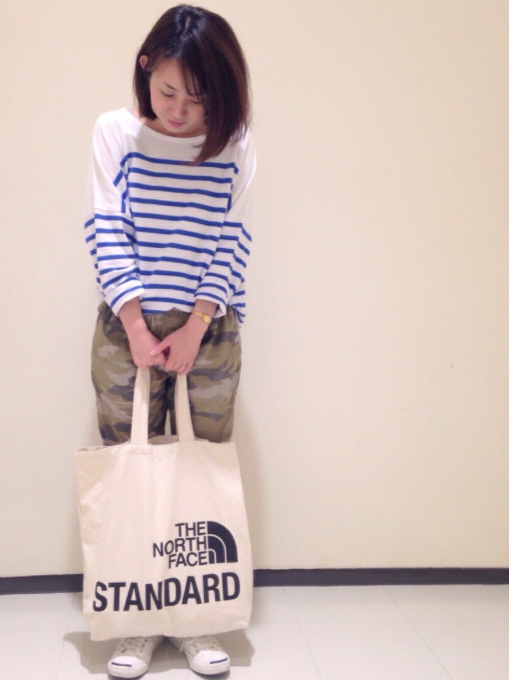 moccoaのTシャツ/カットソー「BEAMS BOY / ナバルボーダー ビッグボートネック」を使ったコーディネート