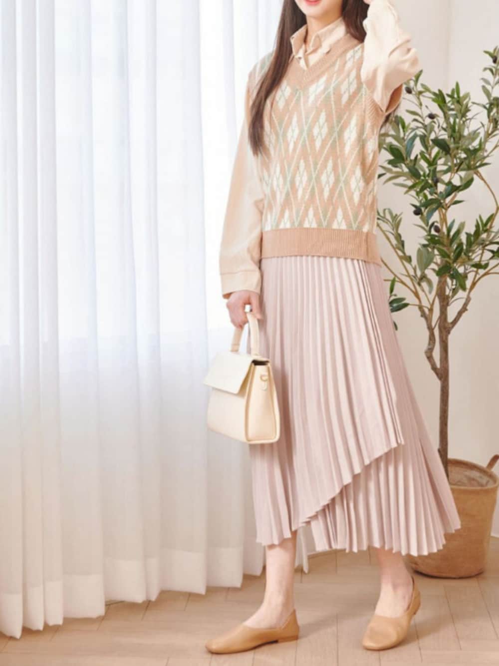 ソフトな色合いのニュアンスカラーが ナチュラルな優しい雰囲気を演出する アーガイル柄ニットベスト。 薄すぎず厚すぎない程よい厚みの生地感が 春夏秋冬ロングシーズン使える優秀アイテム。 アイボリー、ベージュ、イエロー、ミントの4色展開でやわらかな配色がトレンドの淡色コーデにもぴったり。 デニムやワイドパンツに合わせたカジュアルコーデ、アイボリーヤグレーのボトムに合わせたこなれた淡色コーデ、マーメイドスカートやプリーツスカートに合わせるとフェミニンなナチュラルコーデに。 me+emselect instagramにてお得なセール情報や新着商品チェックできます! __________________________ instagram : @meemselect __________________________