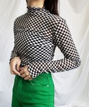 me+emselectのTシャツ/カットソー「ブロックチェックシアーハイネックメロートップス 【韓国製】」を使ったコーディネート