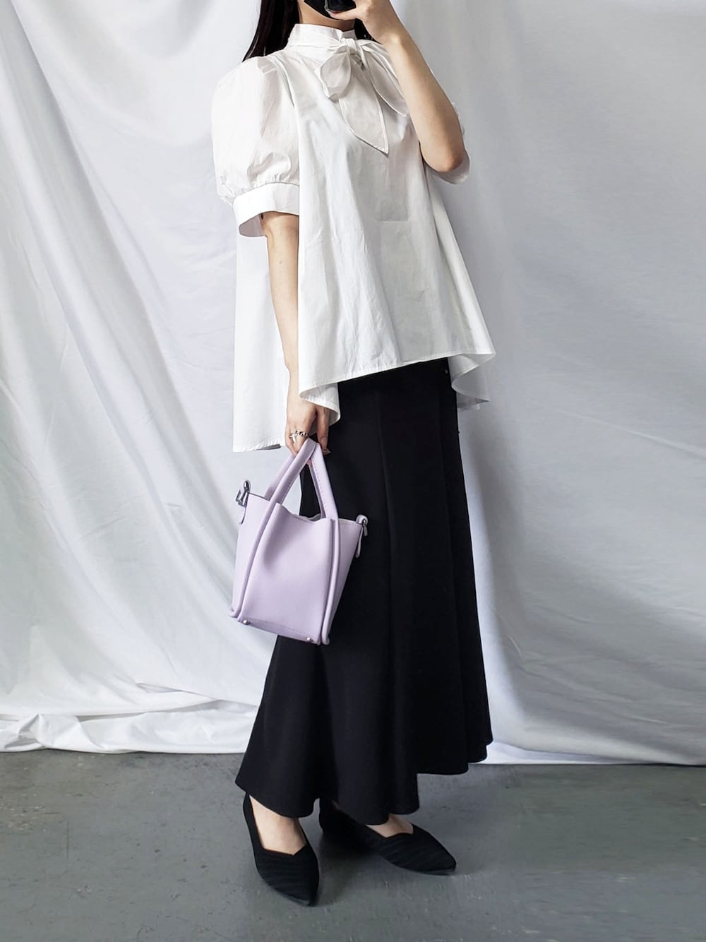me+emselectのシャツ/ブラウス「【 2way / 5color 】ビッグリボンハイネックパフスリーブフレアブラウス」を使ったコーディネート