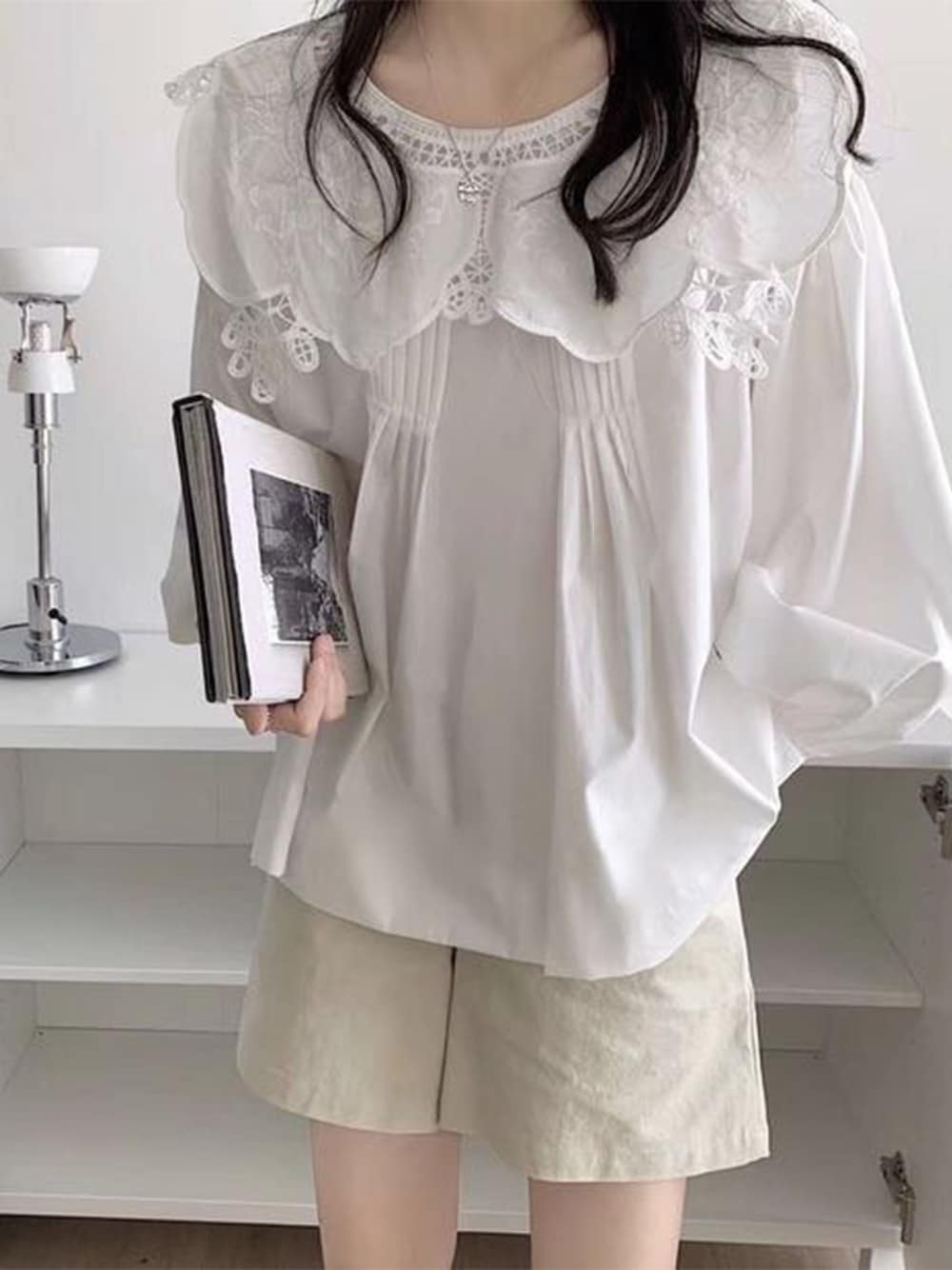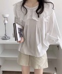 me+emselectのシャツ/ブラウス「刺繍かぎ編みレース襟タックブラウス」を使ったコーディネート