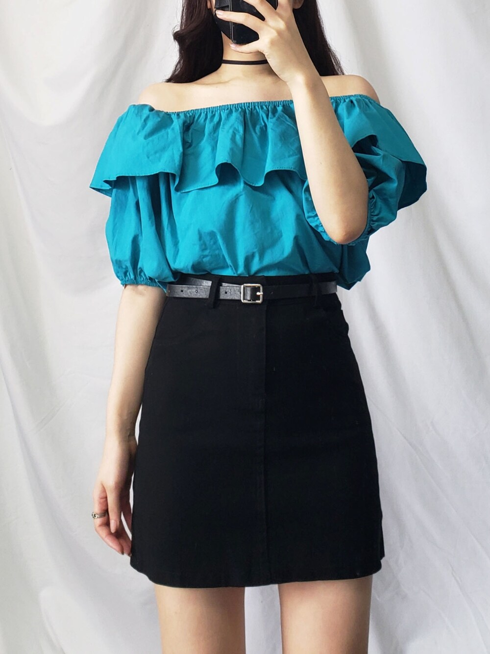 me+emselectのシャツ/ブラウス「【 2way / 5色展開 】オフショルダーカラーフリルブラウス」を使ったコーディネート