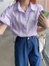 me+emselectのシャツ/ブラウス「【 5色展開 】半袖ロールアップカラーコットンシャツ」を使ったコーディネート