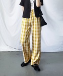 me+emselectのスラックス「【 9色展開 】チェック柄ハイウエストタックルーズワイドパンツ」を使ったコーディネート
