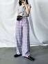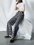 me+emselectのスラックス「【 9色展開 】チェック柄ハイウエストタックルーズワイドパンツ」を使ったコーディネート