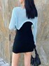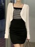 me+emselectのカーディガン/ボレロ「【 5色展開 】ラウンドショートボレロカーディガン」を使ったコーディネート
