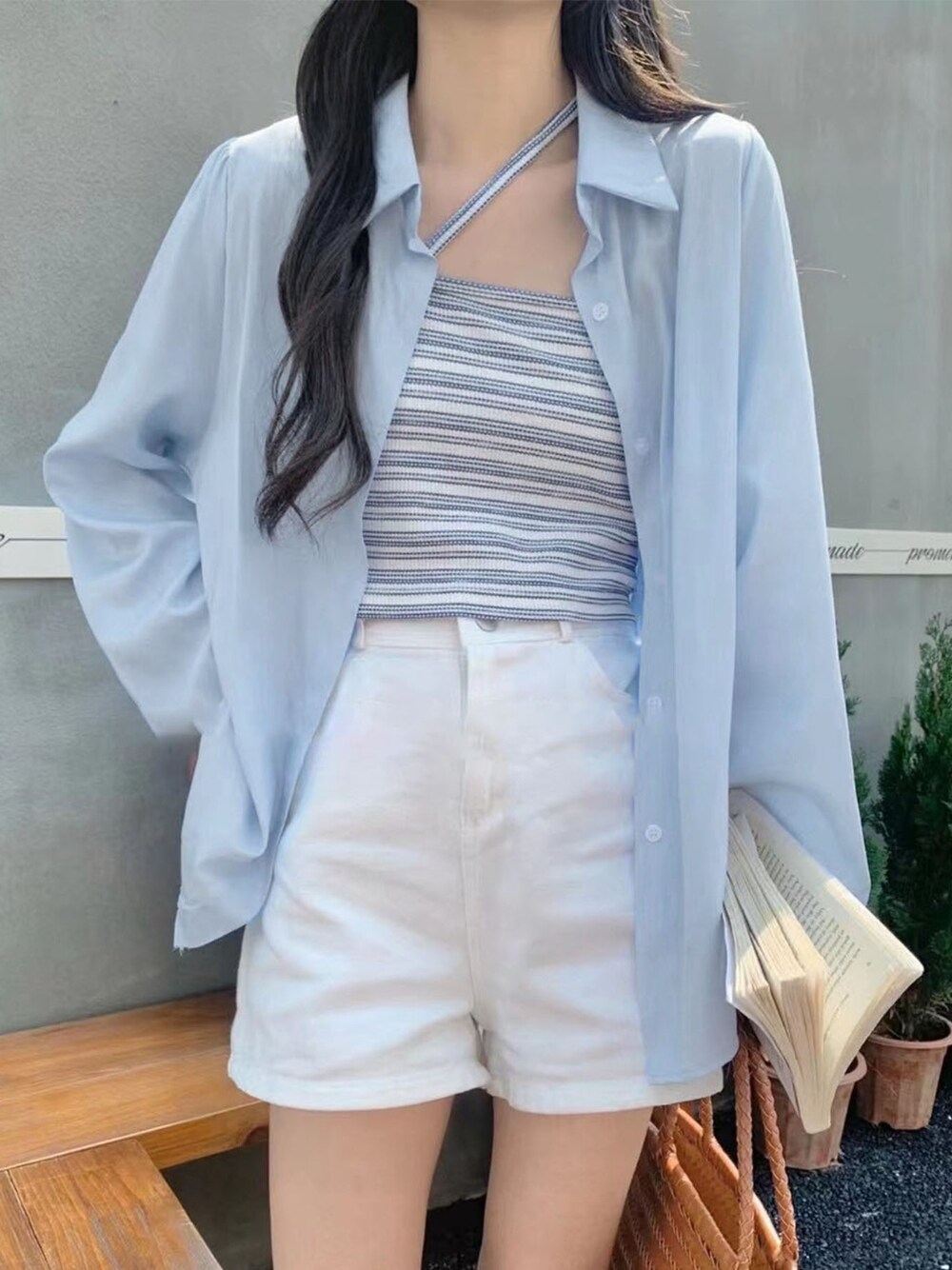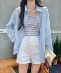 me+emselectのシャツ/ブラウス「【 セットアイテム 】サテンビッグシャツ&クロスストラップショートキャミソール SET」を使ったコーディネート