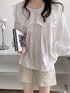 me+emselectのシャツ/ブラウス「刺繍かぎ編みレース襟タックブラウス」を使ったコーディネート