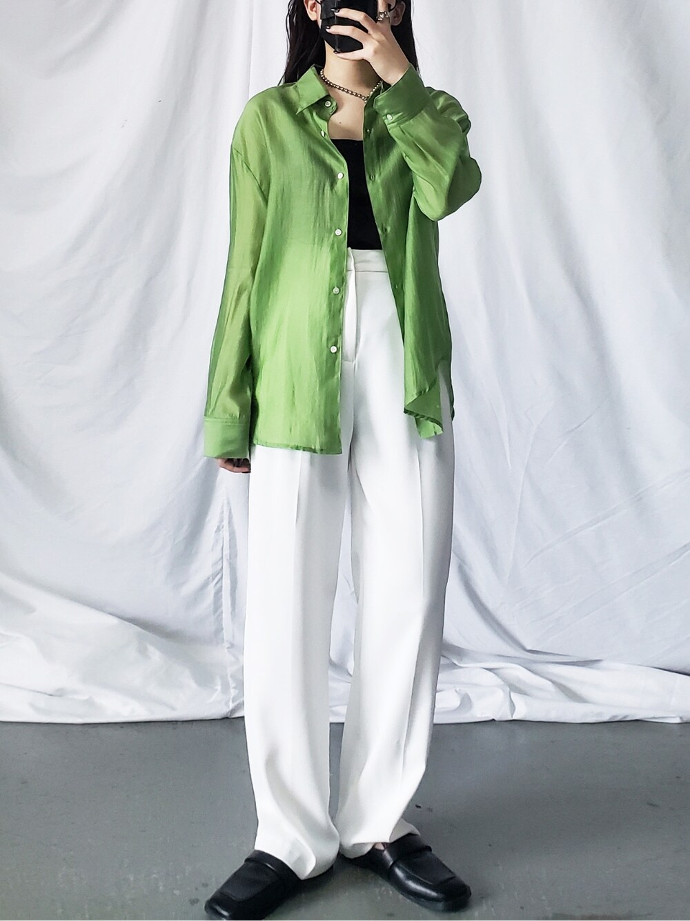 上品で落ち着きのある光沢感と大人な透け感を叶えた シアーカラーオーバーシャツ。 羽織りとしてもトップスとしても カラーがきれいなシアーシャツです◎ カラーは5色展開🌈 スワイプしてね➡️ me+emselect instagramにてお得なセール情報や新着商品チェックできます! __________________________ instagram : @meemselect __________________________
