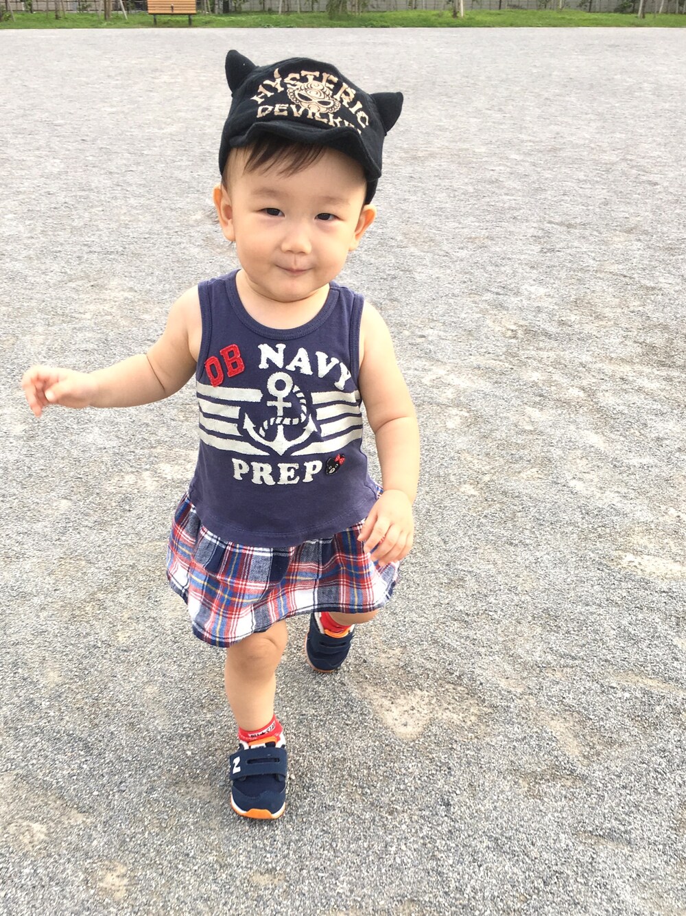 夏物しまっちゃったからある物着せたコーデ。 秋じゃないの?夏に戻ったの?あつーい。 帽子だけ秋を意識(ハロウィン的な)