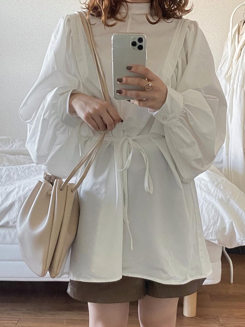 __mefilのショルダーバッグ「巾着バッグ」を使ったコーディネート
