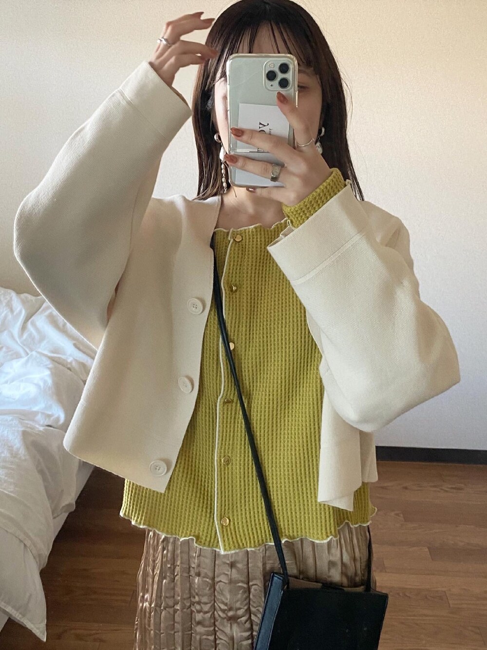 __mefilのカーディガン/ボレロ「カットソーワッフルメローカーディガントップス」を使ったコーディネート